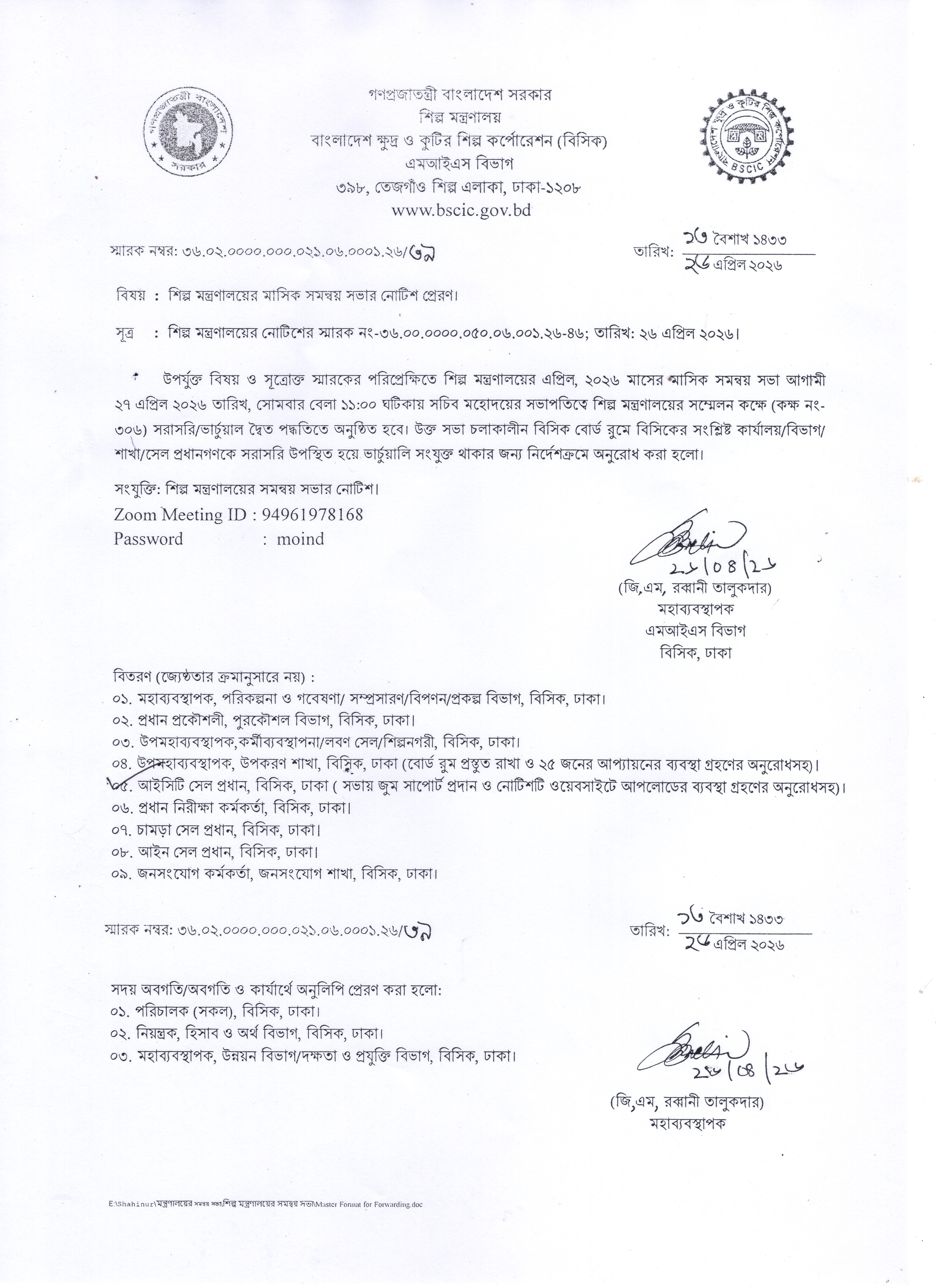জনাব মোঃ রফিকুল ইসলাম চৌধুরী, সহকারী সম্প্রসারণ কর্মকর্তা, উন্নয়ন বিভাগ, বিসিক, ঢাকা এর অবসরোত্তর ছুটি এবং ছুটি নগদায়ন মঞ্জুর সংক্রান্ত অফিস আদেশ ৪৫৪৭